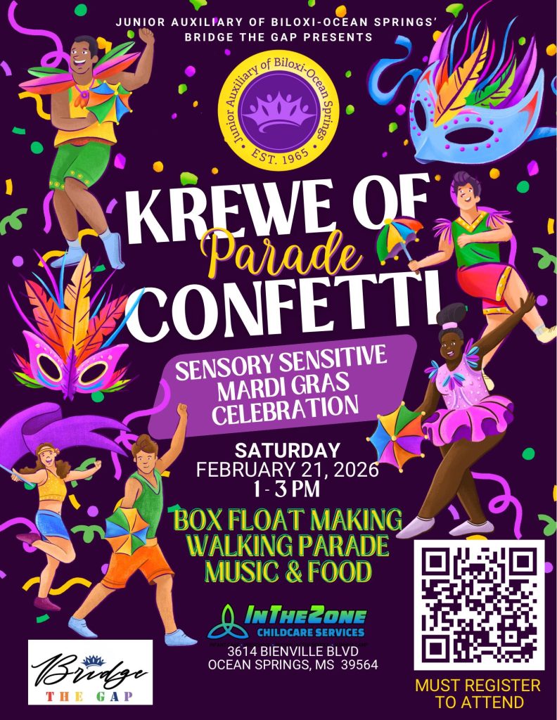 JABOSβ Bridge the Gap program is hosting a special Sensory Sensitive Mardi Gras Parade for kids who can easily become overwhelmed at city parades. This event will be a fun and welcoming experience for all!