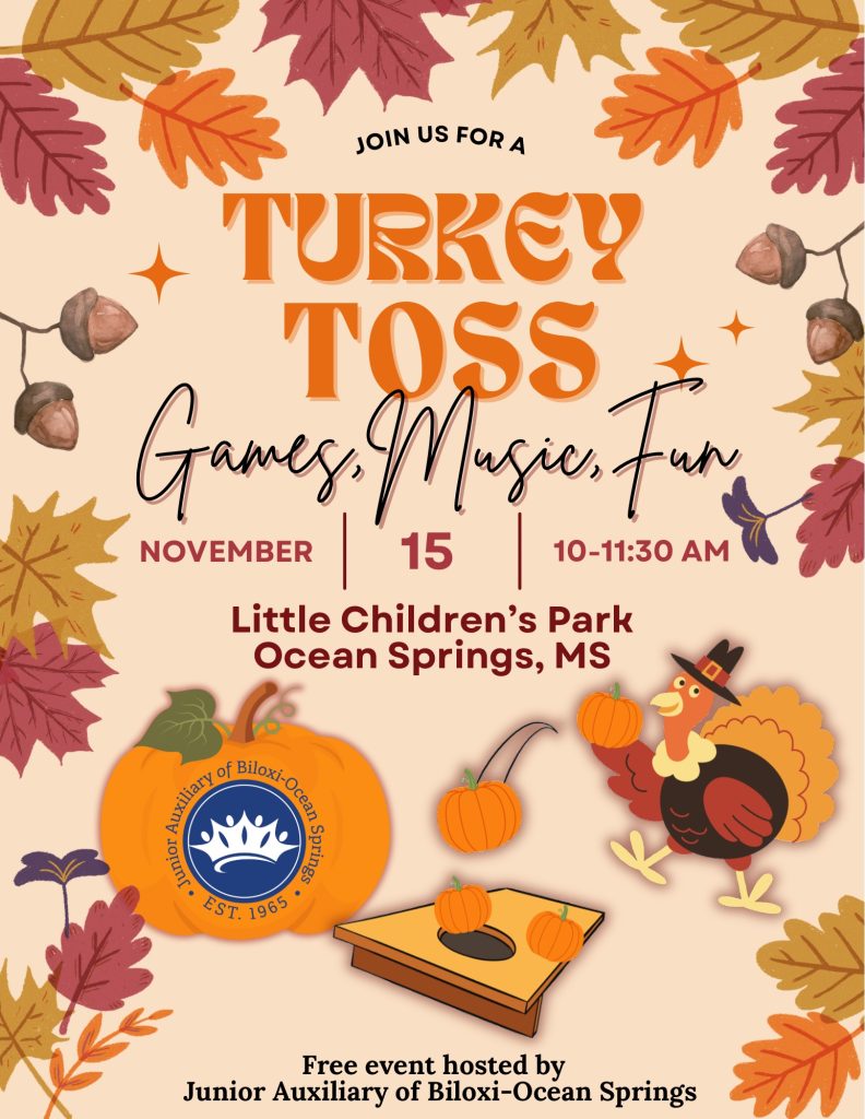 Join the Junior Auxiliary of Biloxi–Ocean Springs for our Fit4Life Project’s annual Turkey Toss at Little Children’s Park!
